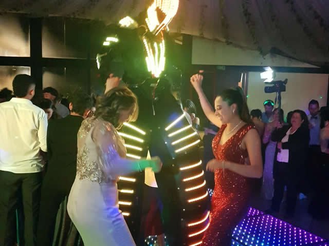 Pista de baile o pasarela espejada con tecnología pixel, programable, audio rítmica.